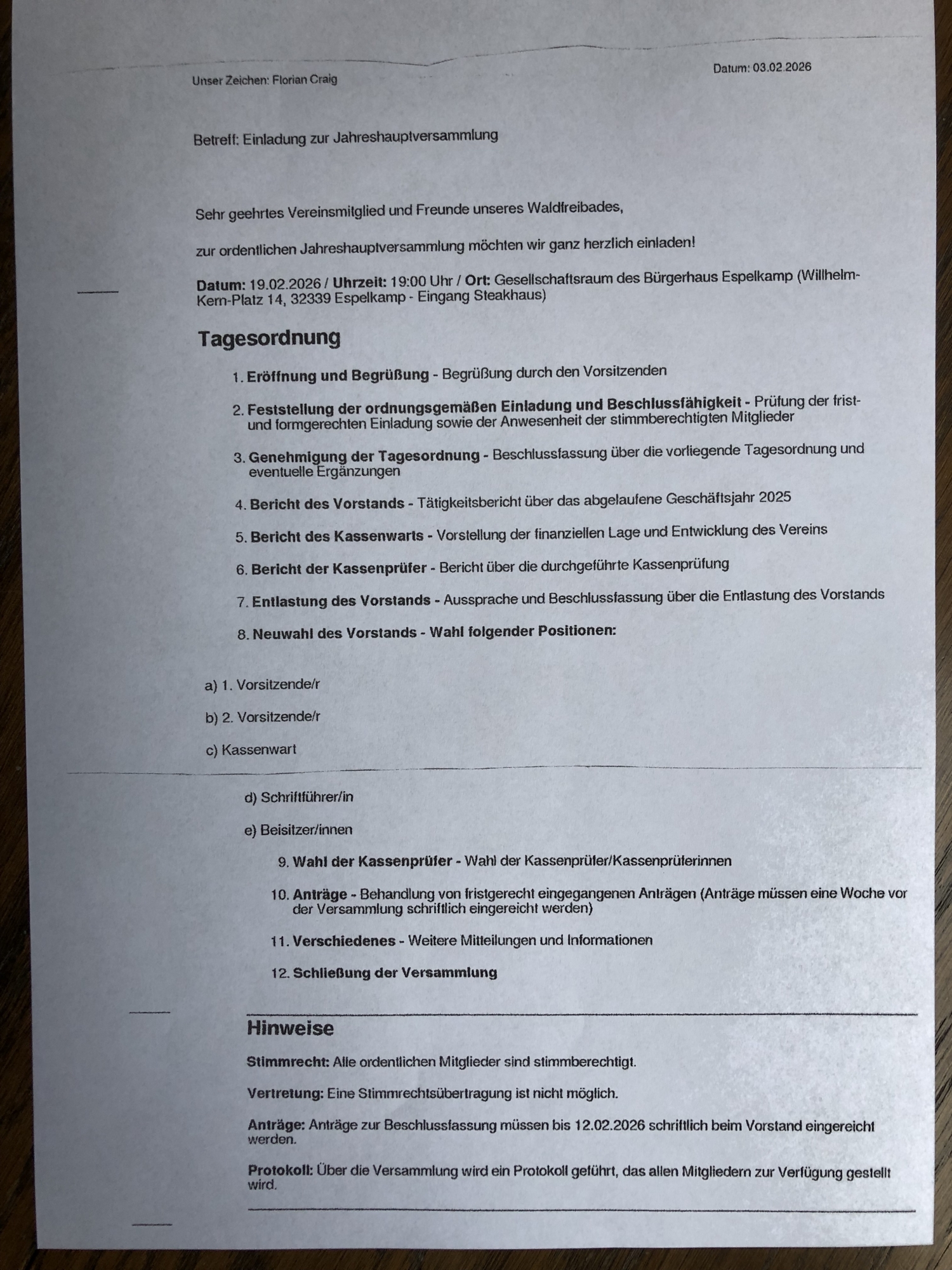Liebe Mitglieder, demnächst erhaltet Ihr eine Einladung zu einer außerordentlichen Versammlung,